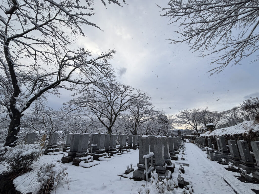 本日、高尾墓園一帯は雪に包まれ、