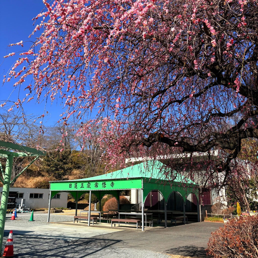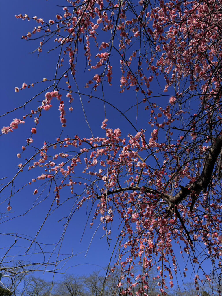 境内の枝垂れ梅は2月中旬に満開を迎え、